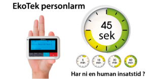 Med EkoTek når den som är under hot och våld sina medarbetare inom några få sekunder, medarbetarna ser samtidigt direkt var personen befinner sig och kan vara på plats inom 15-45 sekunder! Samtidigt som kollegorna får larmet och kan börja agera skickas informationen även till larmcentralen.