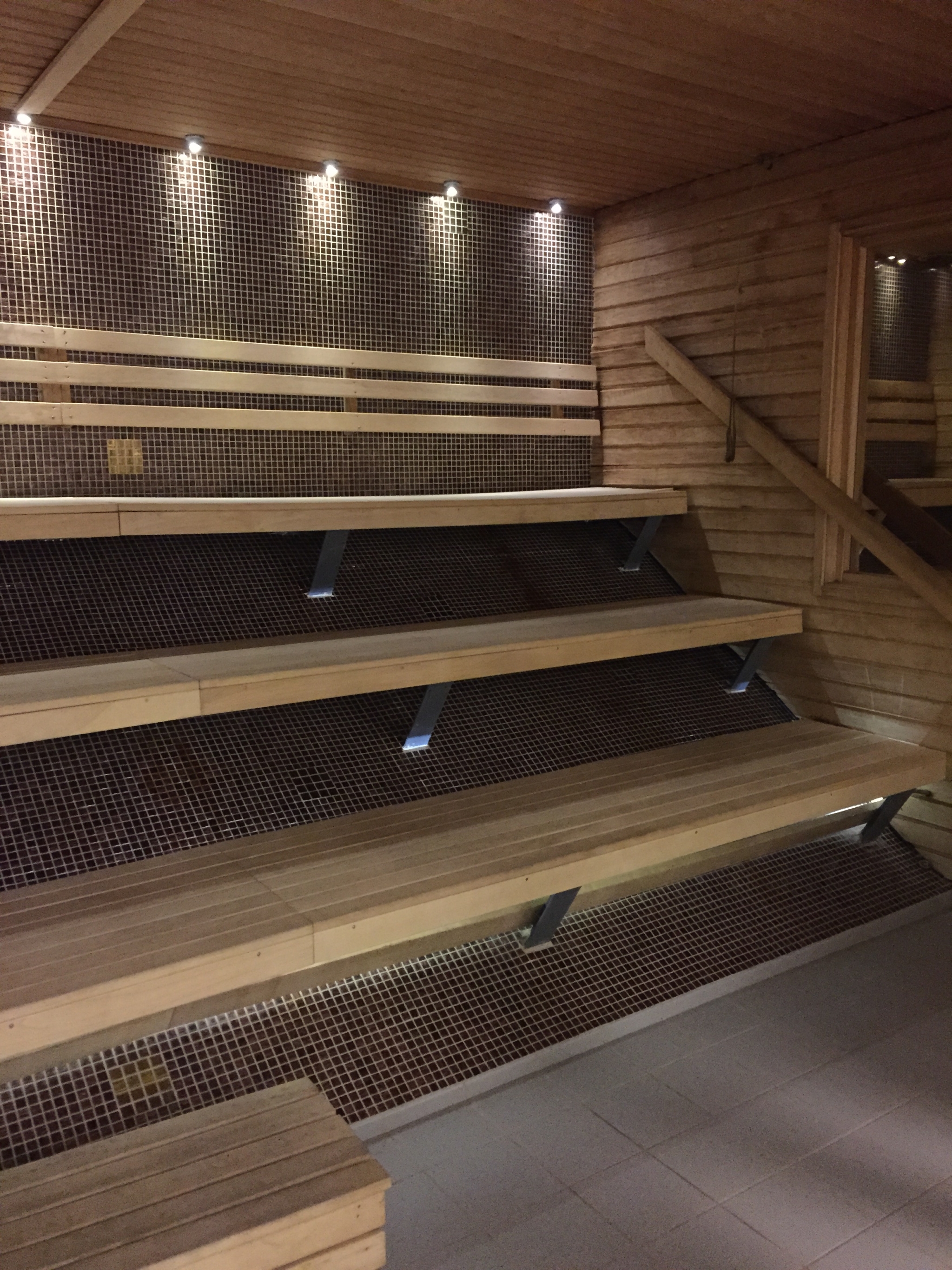 -”I nuläget har vi 6 stycken hjälpknappar utplacerade i simhallen, romerska badet och omklädningsrummen. Vid det romerska badet har vi en normal bastu och en het bastu, vilka är extra