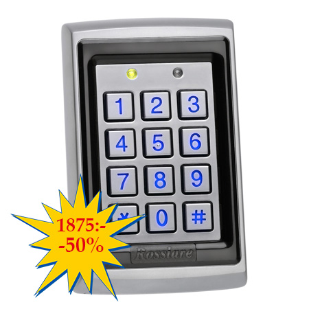 Du kan lägga in 500 användare med kort + kod. Kodlåset har metallknappar för PIN-koder och en inbyggd beröringsfri läsare för RFID inloggningsuppgifter.